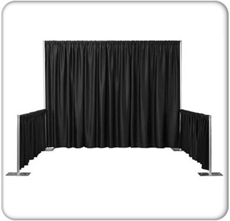 Each 10’x10′ booth includes an 8′ high black drape backwall, 3′ high black drape sidewall, two folding chairs, one 8′ covered table, and a waist basket with trash bags.